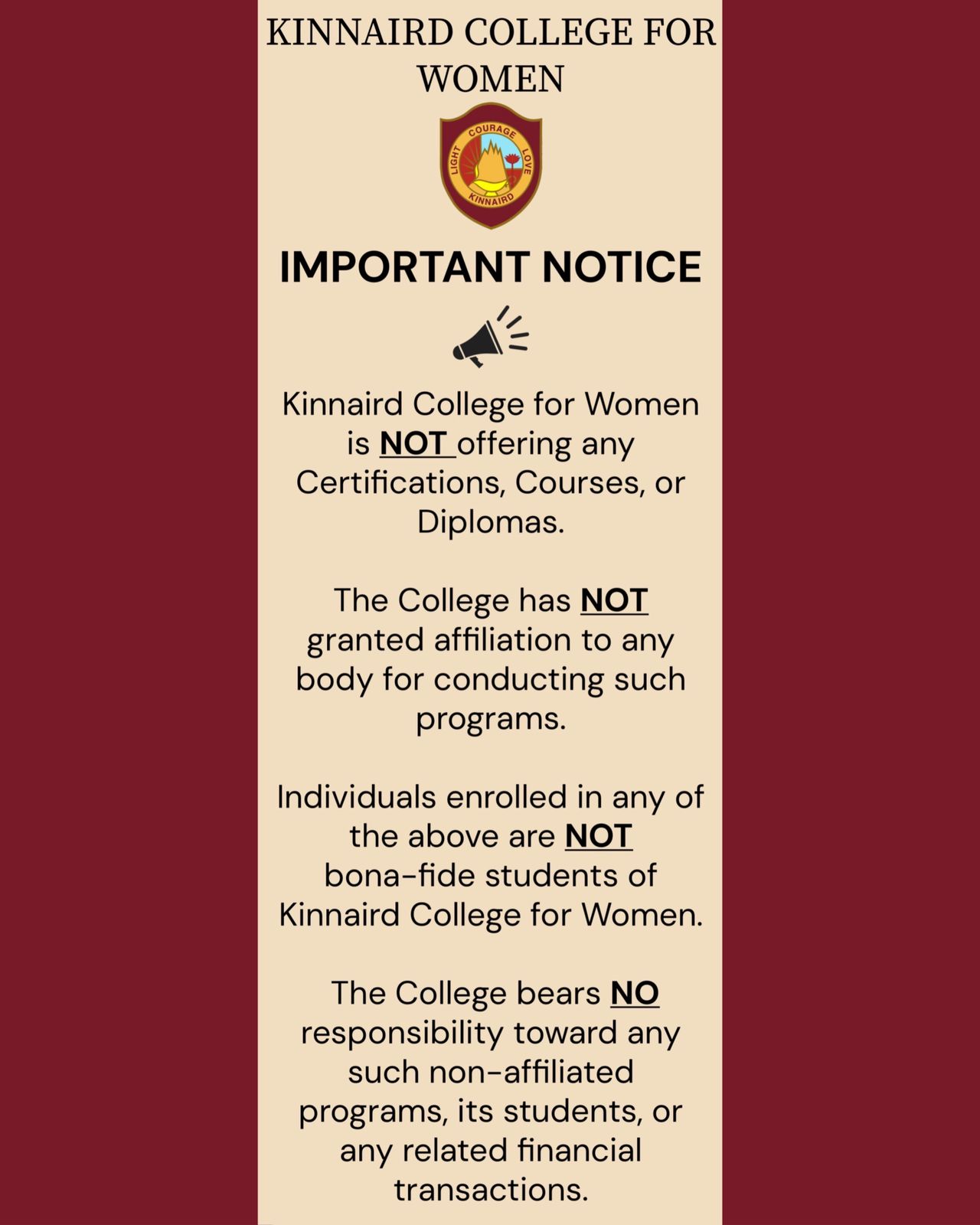 Kinnaird College, named after a titled Scottish family, is not just a name any more. It is a legacy lived through thousands of its graduates spreading the Light of the education instilled in them, with the Courage infused in their character and bearing Love for all, woven into the very thread of their beings.