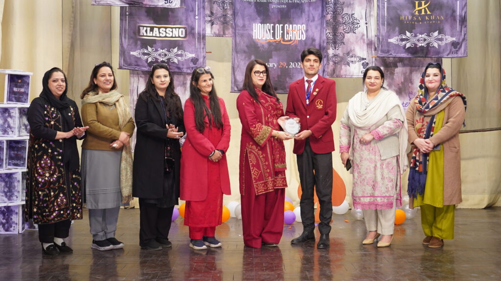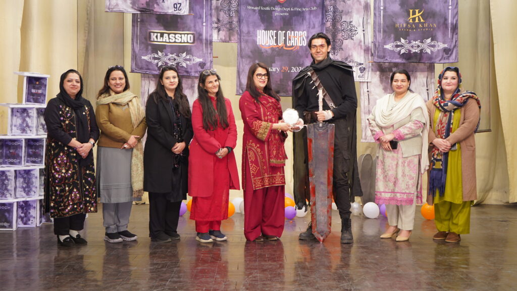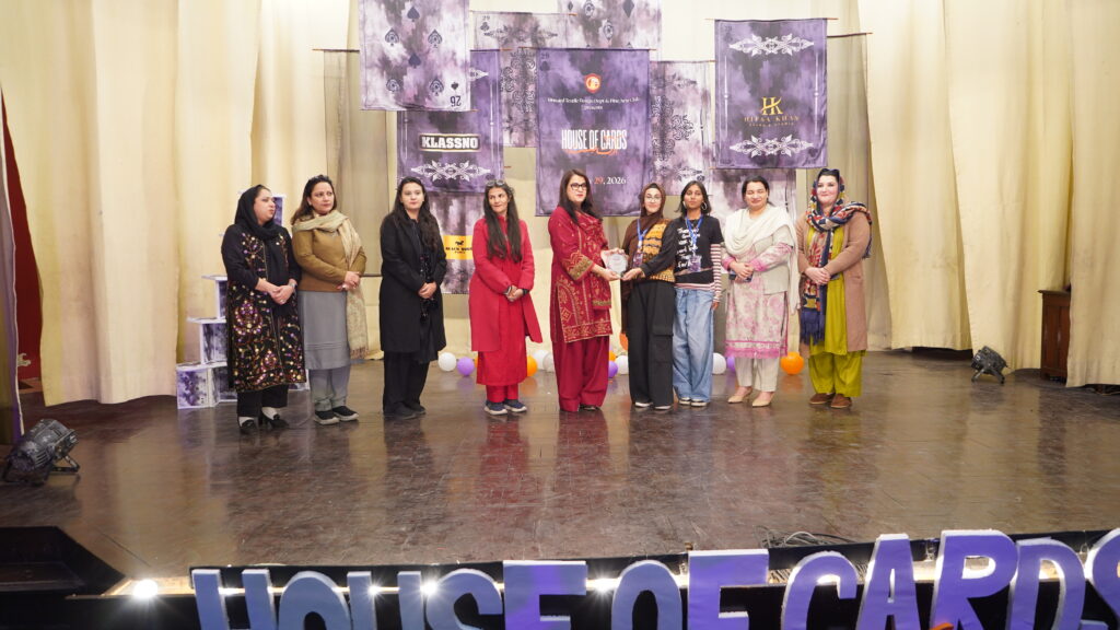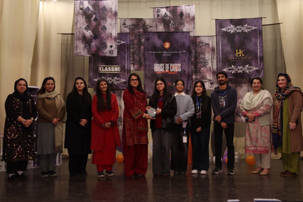 The Textile Design Department, in collaboration with the Fine Arts Club, Kinnaird College for Women, Lahore, organized “House of Cards – Artfest” on 29 January. The event provided a vibrant platform for students to showcase their creativity, artistic skills, and conceptual depth through a diverse range of textile and fine art works.