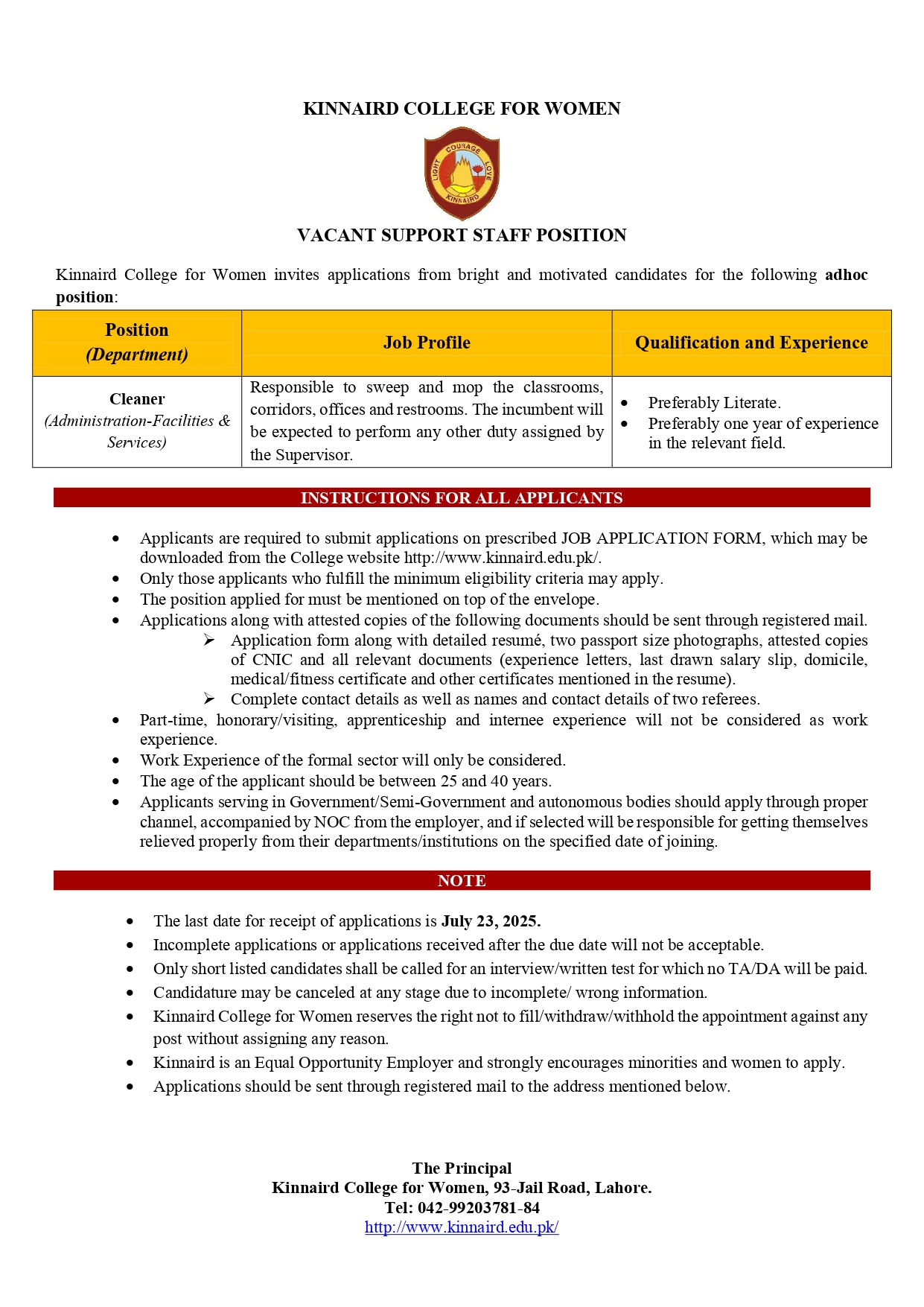 Jobs Non-Teaching Positions Support Staff Positions Faculty & Admin Staff - Job Application Form Click here to download the Job Application Form +92 42 9920 3781 93 Jail Road, G.O.R. – I Lahore, Punjab Get directions Faculty Jobs KAC KCLCD ICPWE Student CMS Teacher CMS © 2024 Kinnaird College. All Rights Reserved Powered By Collectum Solutions